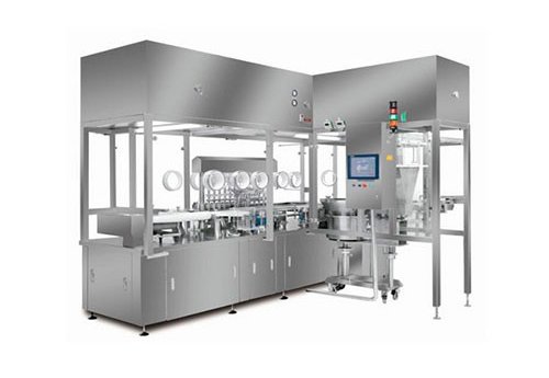 This machine adopts single row synchronous belt for conveying, and servo motor control for following movement: filling needle up and down & fro and back, integral type sucker plugging and outfeed. It can automatically finish procedures of vial orienting, conveying, (pre-nitrogen), filling, (post-nitrogen), stopper orientation, plugging etc. For the plugging, it can do full plugging and half plugging.
