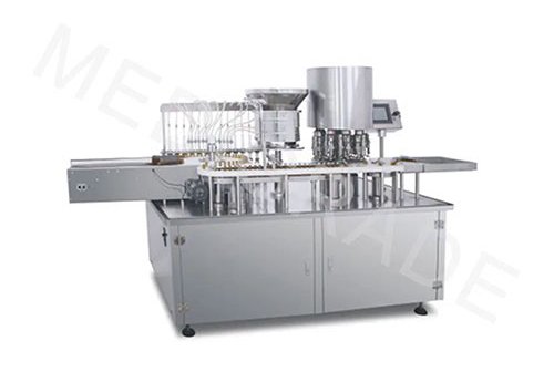 The HHGL10 includes a rotary table for moving bottles, a positioning mechanism, a filling system, a device for installing an external lid and a transportation mechanism, a lid rolling mechanism.
