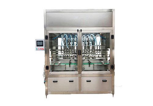 This machine is suitable for filling water and cream products, especially for high viscosity materials (such as daily chemical, washing chemical, suspension agent, etc.). PLC controlled, parameters are set via HMI on a touchscreen. Filling range is 50 – 1000 ml. Filling speed is up to 4,500 BPH.