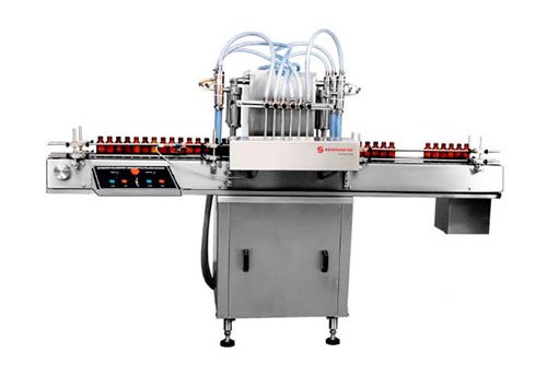Volumetric Liquid Filling Machine SVAVLF100/150/200 works on volumetric principle with diving nozzles. This versatile unit is suitable for filling various viscosity liquid in to the container. The unit consists of slat conveyor, reciprocating nozzle with self—cantering devices & syringe with SS. body.