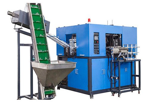 Suitable for all shapes of PET plastic bottles, widely used to produce the carbonated bottle, mineral water, pesticide bottle, oil bottle, cosmetics, wide-mouth bottle and hot fill bottle. PLC controlled; parameters are set via HMI on a touchscreen. Capacity is 2,000 BPH. Produces bottles from 200 ml to 2 L.