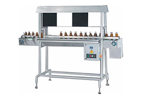 Inspection table have stainless steel structure with moving S.S. mechanical slat chain. The operators in turn pick up the bottles & visually inspect the bottles in the alternate white & black background to check for any particles in the liquid filled, sealed & breakage of bottle. PVC black & white board as per GMP norms. Output depends on operator.