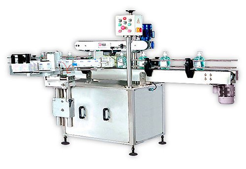 The machine is able to label self-adhesive tapes onto two opposite sides of various kinds of containers such as tin can, glass bottle, PET and PVC bottles. In addition, as an option, the devices that stamps production number and date can be added to the system. The machine can also be modified to label on round containers together with double-sided containers.