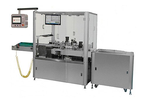 This machine stands out for precise label positioning and can wrap around cylindrical vials and ampoules. Fragile and unstable containers are handled with care, discharging is performed in upright position. Servo drive, PLC and touch screen control. Equipped with auto-reject system for missing label (option).