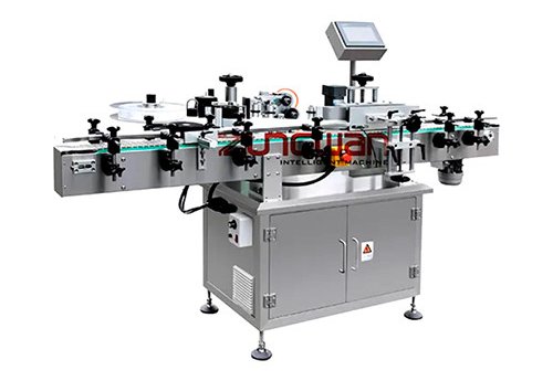 Suitable for the adhesive label of every kind of round small bottle or any other round small bottles in the industry of medicine, foodstuff, cosmetics and so on. PLC controlled; parameters are set via HMI on a touchscreen. Easy to operate, equipped with multi engine drive, separate timing, dependable position, and high sensitivity. Can be matched with coder, clear font and firm.