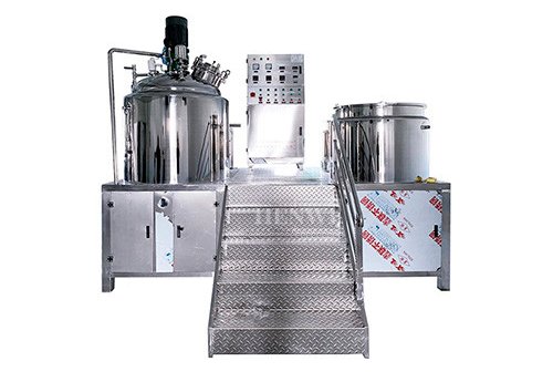 The vacuum heating lifting homogenizing emulsifier with oil and water phases is a specialized piece of equipment designed for emulsifying, homogenizing, heating, and mixing processes. It is widely used in industries such as cosmetics, pharmaceuticals, food, and chemicals. Working capacity: 1000 Liters