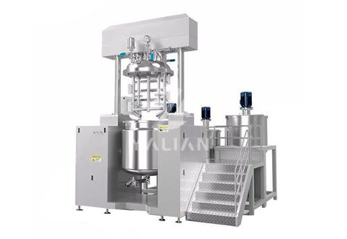 The vacuum emulsification machine is mainly composed of water phase pot, oil phase pot, powder pot and main emulsifying pot, vacuum system, lifting system (optional), electrical control system (PLC is optional), operating platform, etc.
