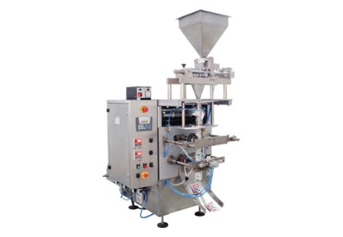 A vertical form, fill and seal machine for producing centre-sealed sachets handling all types of free flowing/non-free flowing powders/granules. PLC controlled, parameters are set via HMI on a touchscreen. Designed for free flowing Granules, Powders, Pulses, Rice, Rava, Sugar, Glucose, Salt, Detergents, Tea, Coffee Beans, etc. Filling range is 1 – 250 g.