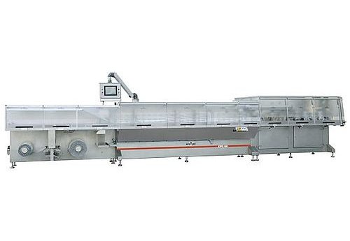 Front reels loading. Machine with reduced sizes and higher output. Self-supported frame, clean and without holes. Standard stainless execution. Reel shafts expandable without toolings. Continuous carousel. Low inertia cams. Low maintenance and high durability cutting device. Net electrical configuration. Remote tele assistance. Continuous unwinding. Formats memory programmed in récipes.
