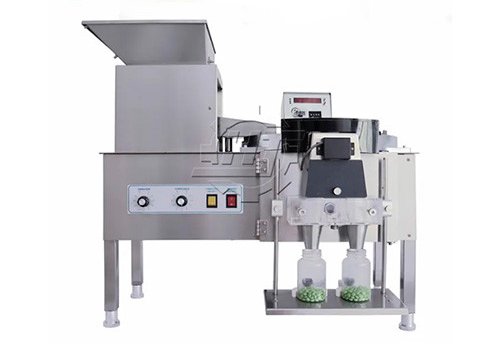 This is a semi-automatic counting and filling device designed for tablets, hard and soft capsules, pills, and similar products used in pharmaceutical and food industries. It accurately counts and fills products into bottles using vibration feeding and rotary counting. The machine allows adjustable counting capacity from 1 to 9,999 pieces per bottle, offering stable operation, high accuracy, and GMP-compliant stainless-steel construction.