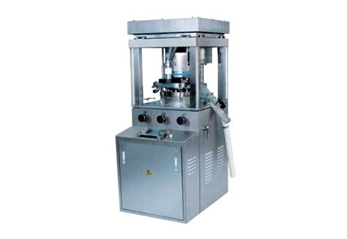With single impeller force feeder, double forming process by per-pressure and main pressure. Bulk material from hopper (hopper can be filled manually or by using mechanical equipment like transfer vacuum powder) is poured into prior to tableting or compression, fill the die cavity, and are compressed by upper and lower punches into tablet. After compression, tablets are ejected by ejection adjuster.