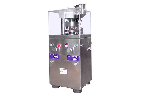The machine is a single-press type, continuous automatic tablet press for pressing granular raw materials into tablets. It is used for small-scale production. Max output: 17 600 pieces/hour