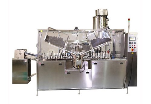 Designed to fill laminated tubes with diameter 16 – 50 mm and aluminum tubes with diameter 10 – 50 mm. Filling range is 1.5 – 250 cc, filling accuracy is +/-1 %. Tube length is from 80 to 205 mm. Design speed is 60 cycles per minute.