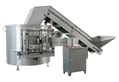 This bottle unscrambler machine is suitable for unscrambling disorder polyester bottles, make them order and in one line, then discharge them by vacuum conveyor. Production capacity: 12 000 b/h