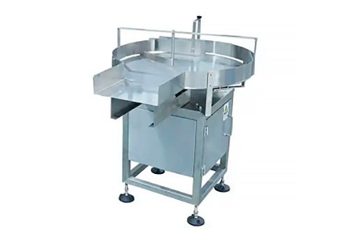 This bottle unscrambler is a dynamic worktable with frequency control. Its procedure: put bottles onto round turntable, then turntable rotate to poke bottles onto conveying belt, filling is began when bottles are sent into filling machine. Production capacity: 10-120 bottles/minute