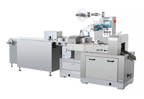 Машина подходит для автоматической резки и упаковки в пакет-подушки молочных конфет, фруктовых тортов, жевательной резинки и леденцов. Она может формировать упаковку для ирисок и жевательной резинки. Допустимый размер упаковки должен находиться в пределах 20 – 120 х 12 – 20 х 6 – 12 мм. Форма упаковки может быть квадратной, прямоугольной или цилиндрической. Управление под ПЛК; параметры вводятся с ИЧМ на сенсорном экране.