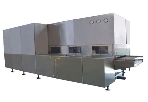 В основном применяются для санобработки, стерилизации и сушки нагревом флаконов для антибиотиков. Также могут работать с бутылками других типов, таких как тара для пероральных жидких лек. форм. Машина имеет туннель, разделенный на три зоны - предварительный нагрев, стерилизация под высокой температурой и охлаждение. Для стерилизации используется разогретый воздух и ламинар.