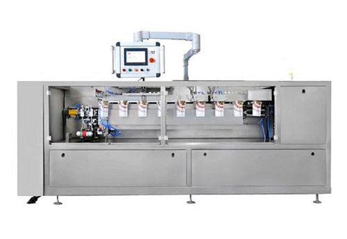 Основной упаковщик может быть интегрирован с различными системами розлива и рассыпки, подходящими для всех видов продуктов, таких как порошки, мелкие гранулы, жидкости, пастообразные вещества, продукция кусками, полосками и нестандартные продукты. Для работы машине необходим подвод сжатого воздуха с потреблением 400 л в минуту. Объем наполнения от 500 до 1500 мл.