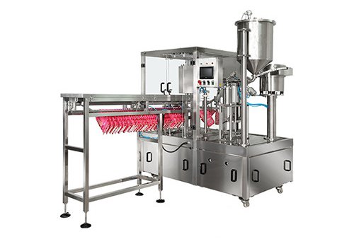 Машина предназначена для наполнения и укупоривания пакетиков, на которых есть горловина с крышкой. Фасует такую жидкую продукцию, как желе, соевое молоко, молоко, йогурты, питьевая вода, фруктовые соки, мороженое, растительное масло, специи, моющие средства и др. Объем наполнения 30 – 500 мл. Для работы машине необходим подвод сжатого воздуха давлением 0,5 – 0,8 Мпа.