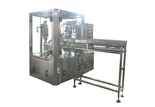 Представляет собой полностью автоматическую линию, осуществляющую следующие операции: автоматическая загрузка пакета, наполнение в заданном положении, очистка носика, подача крышки и ее установка, проверка положения пакета, накручивание крышки, выпуск с контролем качества. Производительность 600 – 1000 пакетов в час.