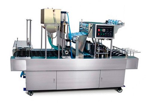 Эта машина предназначена для автоматического наполнения и запайки стаканов, выполняя такие процессы, как подача стаканов, наполнение, запайка, резка пленки, нанесение кода, ультрафиолетовая стерилизация и выгрузка стаканов. Она подходит для упаковки жидкостей и полужидкостей. Производительность машины составляет 32 или 64 стакана в минуту в зависимости от выбранной модели.