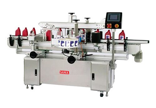 Машина позволяет одновременно наносить этикетки на обе стороны бутылки, обеспечивая одностороннюю и двустороннюю маркировку плоских, квадратных и бутылок, а также на всю окружность цилиндрических бутылок, полумаркировку. Широко используется в косметической и химической промышленности. Скорость маркировки: 80 шт./мин.