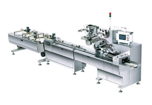 Автомат для упаковки шоколадных плиток, столов, печенья, вафель, нуги, печенья, желе, крекеров, жевательной резинки и т. д. Производительность: 400 шт / мин.