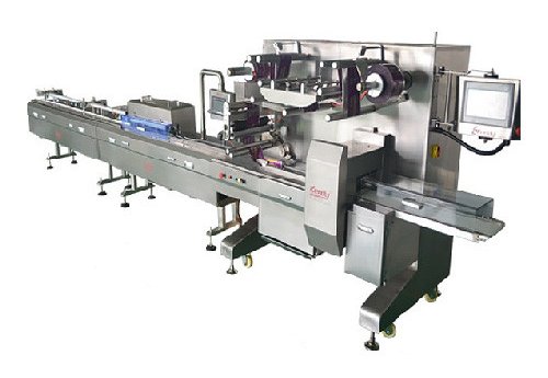 Предназначена для фасовки различных твердых предметов правильной формы, таких как традиционные восточные пирожные, хлеб, печенье, конфеты, пирожные с заварным кремом, шоколад, лапша быстрого приготовления, лекарства, метизы, промышленные товары, лотки, пачки и т.п. Управляется 3 серводвигателями, скорость регулируется индивидуально, длина пакета регулируется под продукцию.