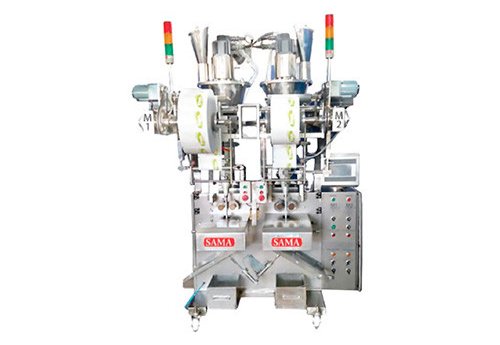 Эта машина производит трехсторонние саше-пакеты для сухого молока, специй, химических порошков, пестицидов и гранул. Скорость до 30-55 саше/мин на ручей (х2 ручья), шнековый дозатор с сервоприводом, термосвариваемая пленка (бумага + полиэтилен совместимы, ПЭ/ПЭВП не подходят). Мощность 4 кВт, 400 В, 50 Гц, трехфазное, посадочный диаметр втулки 76 мм, габариты 1829x1425x2160 мм. Подходит для фармацевтических и химических производств.