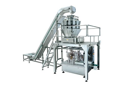 На этой линии в основном устанавливаются роторные упаковочные машины, комбинированные весы и Z-конвейер, подходящие для упаковки всех видов зерен и твердых веществ, таких как конфеты, орехи, изюм, арахис, семена дыни, картофельные чипсы, шоколад, печенье и так далее. Скорость упаковки: 10-30 мешков / мин