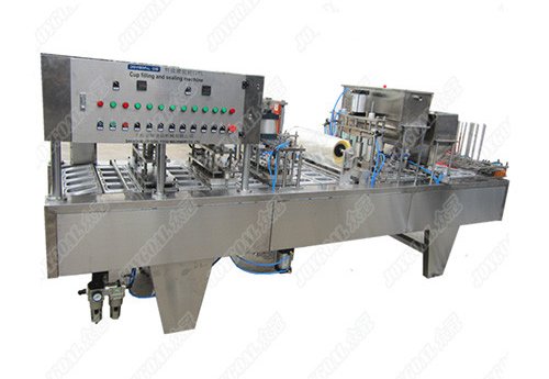 Работает с тарой в виде стаканчиков различной конфигурации, наполняет их продукцией и запаивает композитным материалом. Может фасовать порошки, напитки, желе, молоко, мороженое, масло, джем, рисовый пудинг, вино, медицинские препараты и химическую продукцию. Производительность 11200 – 12800 стаканчиков в час.
