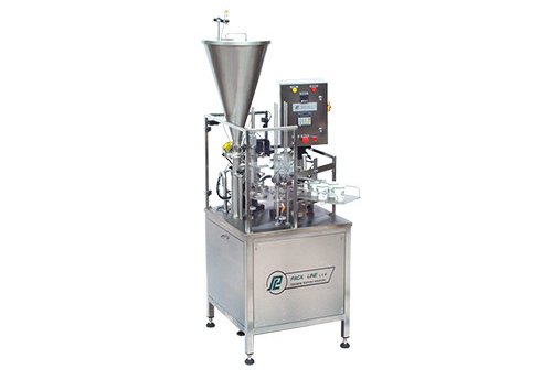 Полностью автоматическая машина для наполнения и запечатывания с предварительно сформированными крышками или мембраной, вырезанной непосредственно из рулона. Эта машина для наполнения и запечатывания легко обрабатывает до 20 унций. объема и использует от 7 до 9 станций вращения в зависимости от конфигурации чашки и емкости. Скорость: 25-50 чашек в минуту