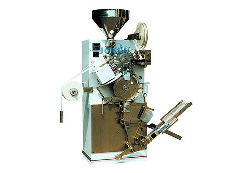 Это наша высокоскоростная автоматическая упаковочная машина чая в пакетики, она формирует чайные фильтр-пакеты с хлопковой нитью и биркой. Производительность составляет 120 пакетов в минуту. Машина оснащается устройством вакуумной подачи, устройством для термосваривания бирки, мешалкой, а также опционально может оснащаться принтером для печати даты.