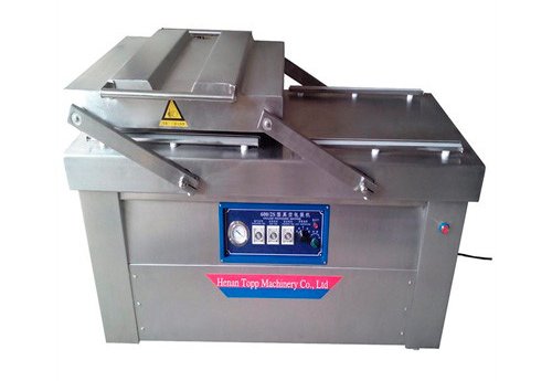 Эта двухкамерная вакуумная упаковочная машина подходит для упаковки многих видов пищевых продуктов, таких как мясо, фрукты, овощи, консервированные фрукты, бобы и т.п. Производительность 120 - 200 упаковок в час.