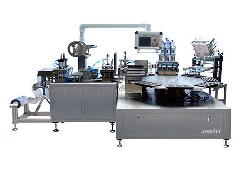 Данное оборудование может упаковывать по 12 тюбиков клея форматом 4 х 3, также может автоматически выполнять формовку, выштамповку и вырубку блистеров, термосклеивание, выгрузку доставку готовой продукции и другие функции. Хорошо подходит для упаковки в блистеры из бумаги и пластика таких товаров, как зубные щетки, губная помада, инжекторы, игрушечные машинки, ножницы и т.п.