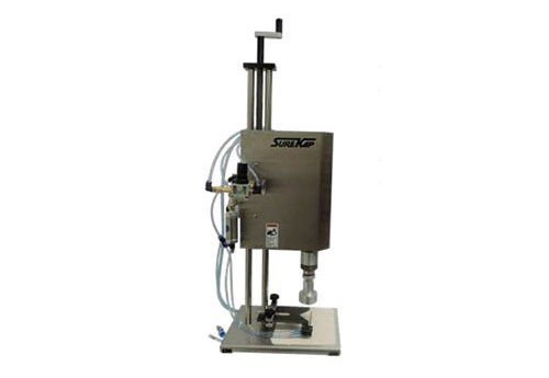 Данная полуавтоматическая укупорочная машина надежно и точно закручивает любые крышки со сплошной резьбой (в том числе и с защитой от детей). Машина контролирует крутящий момент воздушным регулятором. Универсальная направляющая для бутылок точно центрирует круглые, квадратные, прямоугольные, овальные или нестандартные емкости.