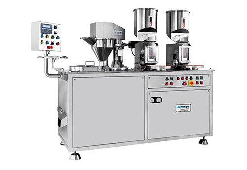 Машина предназначена для наполнения капсул всех размеров порошками, гранулами или пеллетами. Ее ключевой особенностью является двойная система подачи, которая обеспечивает более высокую производительность, выдавая от 30 000 до 50 000 капсул в час. Она включает программируемую систему логического управления, переменную скорость стола для точности и автоматическую систему закрытия капсул для эффективной и надежной работы.