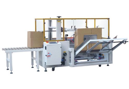 Применяется для формирования и запечатывания картонных коробов одного размера. Для перехода на другой размер требуются ручные настройки, занимающие 2 – 3 минуты. Магазин вмещает приблизительно 100 заготовок. Получаемая коробка размерами должна быть в пределах Д 250 – 450 × Ш 150 – 400 × В 100 – 400 мм.