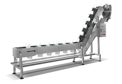 Данная машина используется для транспортировки мелких кусочков, гранул и других твердых материалов, таких как свежее мясо. Она предназначена для автоматизированных линий взвешивания, подачи и упаковки. Машина оснащена бункерами, изготовленными из нержавеющей стали 304 или полипропилена, объемом от 0,9 л до 6 л. Она имеет производительность подъема от 35 до 50 бункеров в минуту, основную мощность 1,1–1,5 кВт и работает от источника питания 220 В/380 В.