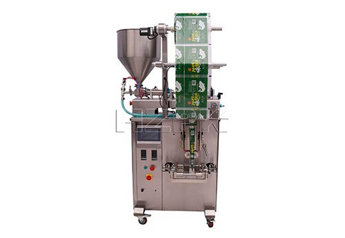 Эта машина подходит для фасовки всех видов пасты и жидкостей без газа, таких как кетчуп, соус, масло и так далее. Используемые упаковочные материалы: полиэтиленовая пленка, алюминиевая фольга. Отрасли применения: пищевая, косметическая, химическая промыш-ленность, производства напитков и т. д. Машина может автоматически выполнять изготовле-ние пакетов, наполнение, запечатывание, резку и подсчет. Управление под ПЛК; параметры вводятся с ИЧМ на сенсорном экране.