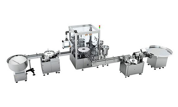 Применяется для розлива жидкой продукции небольших объемов жидкой и маслянистой продукции, такой как шампуни (для гостиниц), электронных сигарет, глазных капель и др. Производительность 3000 – 3600 шт/ч.