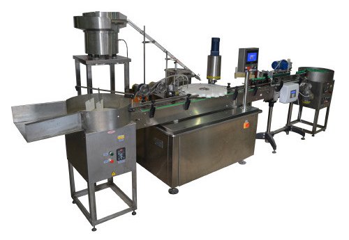 Комплексная линия «Мастер» для розлива спиртовых растворов предназначена для розлива спиртовой продукции в стеклянную или пластиковую тару объемом 30, 50 и 100 мл, укупорки тары алюминиевыми или пластмассовыми винтовыми крышками (2 типоразмера) и нанесения этикетки. Машина применяется в фармацевтической, косметической, пищевой и химической отраслях. Производительность: 2000 шт/час.