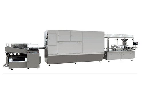 Состоит из вертикальной ультразвуковой моечной машины, сухожарного стерилизационного туннеля, машин розлива и укупоривания. Линия широко применяется на производствах лиофилизатов и препаратов крови. Оборудование полностью соответствует нормам GMP.