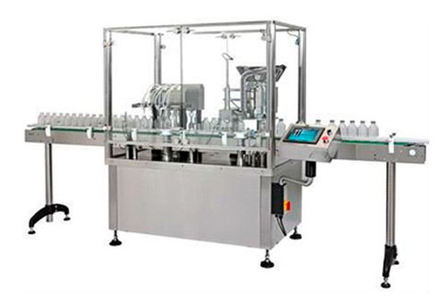 Данная машина используется для наполнения круглых флаконов и бутылок с максимальной скоростью 50 единиц в минуту. Все детали, контактирующие с продукцией, выполнены из нержавеющей стали 316. Точность дозирования составляет +/- 0,5 % в зависимости от типа жидкости при однократной дозе.