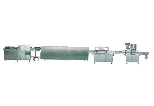 Предназначена для мойки, сушки, наполнения, герметизации и маркировки бу-тылок объемом 30-500 мл, таких как бутылки для сиропа. Линия объединяет ультразвуковую моечную машину, раскладчик, туннельную печь для высоко-температурной стерилизации, машину для наполнения, герметизации и наклейки этикеток. Машины могут работать независимо и подходят для упаковки в коробки и для контейнерных перевозок. Включает ультразвуковую мойку под давлением и устройство для высокотемпературной стерилизации.