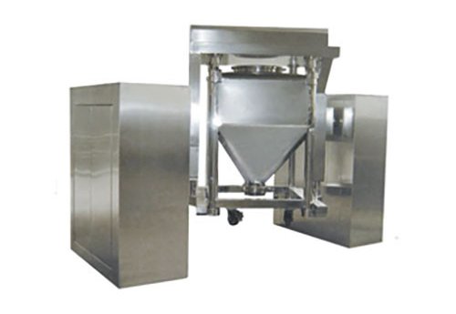 Машина используется в качестве смесителя для твердых порошков в фармацевтической промышленности по всему миру. Равномерность смешивания высокая, емкость для материала подвижна, что очень удобно для загрузки, смешивания, выгрузки и санобработки емкости. Машину легко интегрировать в линию, связав ее с восходящим и нисходящим процессом.