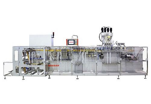 Машина HFFS B 3200/4 формирует и заполняет пакетики в квадруплексе в диапазоне 60 x 80 мм. и 80 х 130 мм. Он может достигать производительности 360 пакетов в минуту и может заполнять до 50 куб. см продукта.