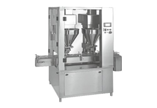 Автоматическая двухголовочная машина для розлива сухого сиропа с линейным шнеком модели DRYFILL-60TWIN, машина для розлива порошка с линейным шнеком и машина для розлива суспензии в бутылки подходят для розлива сухого сиропа в бутылки различных типов и форм с максимальной скоростью 60 бутылок в минуту в зависимости от объема наполнения, типа порошка и размера бутылки с использованием одноканальной двухбункерной системы.