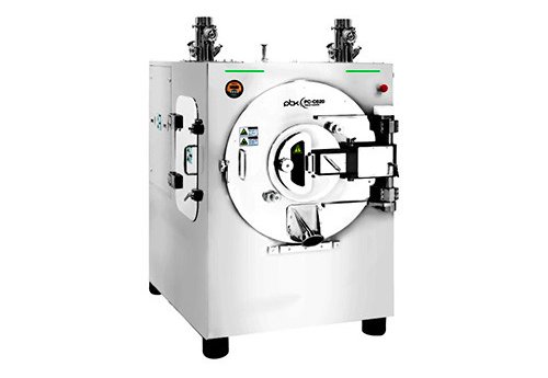 Это компактный, высокопроизводительный коутер опытно-промышленного масштаба, предназначенный для НИОКР и производства малых партий. Он оснащен сменными барабанами с рабочим объемом от 4,0 до 28,0 литров, что позволяет работать с партиями от 2,8 кг до 19,6 кг. В нем используется полностью перфорированный барабан, распылительные форсунки Schlick с защитой от образования наростов и автоматизированный ИЧМ, который управляет рецептами, что обеспечивает соответствие 21 CFR Часть 11 для эффективных и воспроизводимых процессов нанесения пленочных или сахарных оболочек.