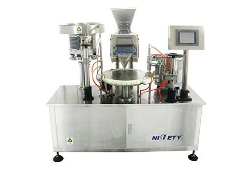 Машина предназначена для упаковки драже диаметром 2,5–5 мм, особенно в бутылки специальной формы. Она объединяет раскладку бутылок, подсчет, наполнение и завинчивание крышки в один блок, экономя пространство и трудозатраты, так как требует только одного оператора. Машина работает со скоростью 30–50 бутылок в минуту, что составляет 13500 – 22500 бутылок за смену, исходя из стандарта 30 капсул на бутылку.